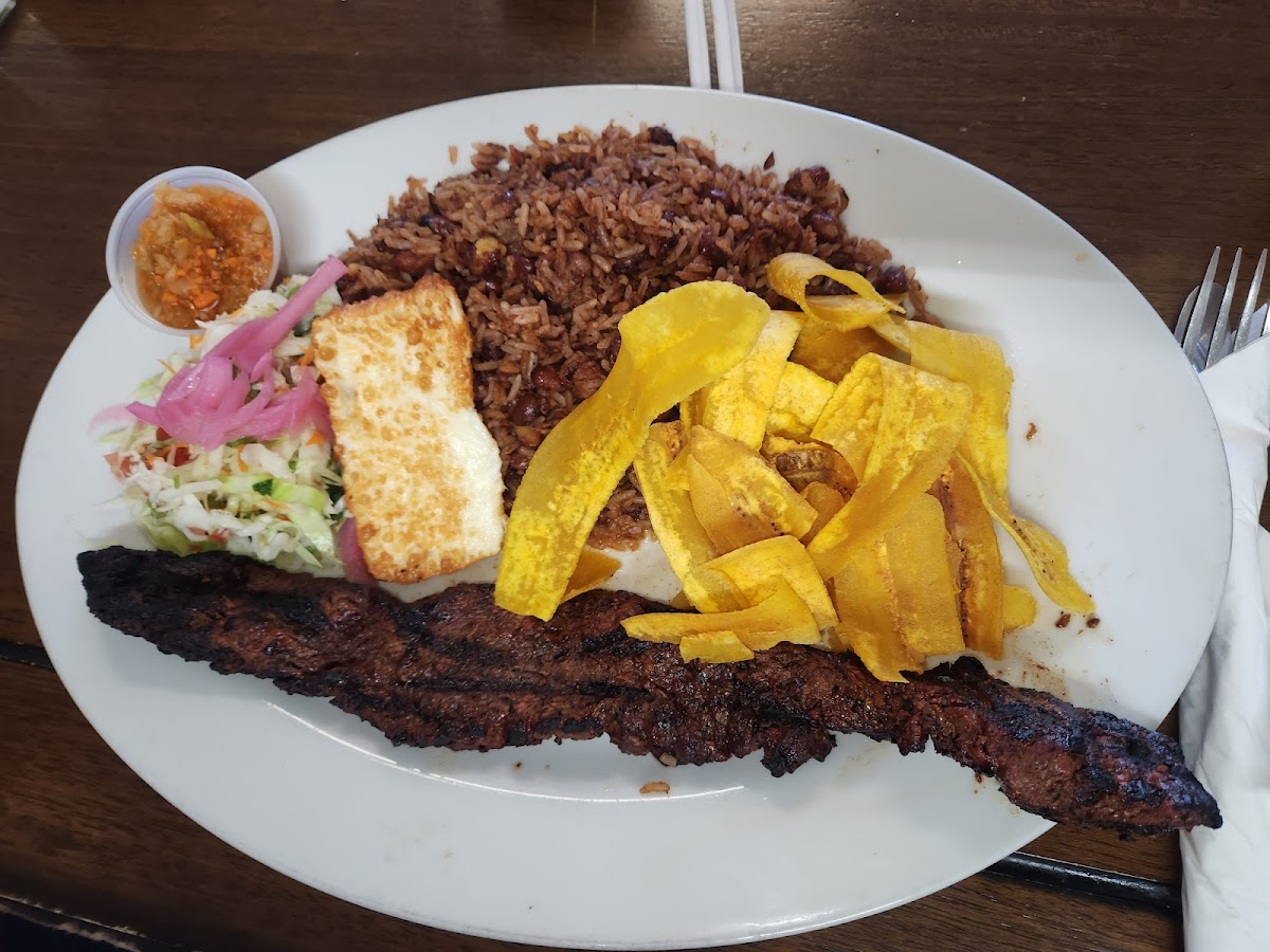 Took my parents here. Didn't know that this place was here 2 months. I gotta tell you. The portion sizes are phenomenal. Fresh cooked steaming meals. Prices a little higher than most places. But you are getting a lot for the price, though. The atmosphere of remind me of nicaragua. It's a family on business which I am always willing to support. Since they are just beginning, they hasn't things in kings to work out as regards their digital online menu.. But if there's something you're not familiar with You can always ask for clarification in their happy to explain it to you thoroughly. Overall, everything reminded me of when I was visiting my grandparents. I recommend this for families that need to share meals. You'll get great portion sizes.